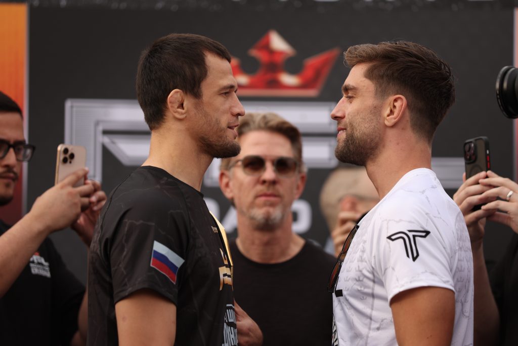 The Main Event is official, as both PFL Lightweight World Champion Usman Nurmagomedov (20-0-0, 1 NC) and challenger Alfie “The Axe Man” Davis (20-5-1) made Championship weight at 155.0 lbs and 154.6 lbs respectively. The Co-Main Event was also solidified, as Ramazan Kuramagomedov (13-0) and Shamil Musaev (20-0-1) made the Championship limit as they weighed in at 170.0 lbs and 169.6 lbs respectively, and are set to compete for the inaugural PFL Welterweight World Championship on Saturday night.